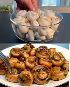 Nakon to su se šampinjoni zapekli promiješajte i nastavite ih peći još nekoliko minuta. Tokom tog vremena, oni će pustiti svoju prirodnu tečnost. Važno je nastaviti kuhanje dok ta tečnost ne ispari jer će na taj način gljive dobiti blago zašečenu površinu. Isparavnje prirodno soka od gljiva tarje oko 5 minuta pa budite strpljivi.
